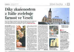 Před 15 lety přišel do Veselí nad Lužnicí nový kněz Vlastimil Kročil. A začal kostel a jeho okolí zkrášlovat, třeba z maštale udělal farní sál. Před časem skončila druhá etapa celkové rekonstrukce kostela a v lednu Kročil dostal Cenu města. VESELÍ NAD LUŽNICÍ V lednu dostal Cenu města a lidé o něm ve Veselí nad Lužnicí mluví jako o schopném manažerovi. Vlastimil Kročil je však především kněz. Svou pověst a renomé si získal hlavně díky opravě farního komplexu a kostela Povýšení sv. Kříže, kterou letos dokončil. Zpřístupnil i vyhlídkovou věž kostela, která je od Nového roku atrakcí pro návštěvníky města. "Když jsem před 15 lety přišel do Veselí nad Lužnicí, tak na zpustlém farním dvoře stála pouze maštal, stodola a pár chlívků. Začali jsme terénními úpravami a bývalou maštal předělali na farní sál, který nyní slouží pro společenská setkávání. Dnes tu nechybí ani letní bar, krb a centrum pro děti a mládež," popisuje 51 letý vikář Kročil. Rodák z Brna se vyučil elektrikářem a pracoval i jako elektromontér v podzemních tunelech. Pochází však z křesťanské rodiny a každou neděli chodil do kostela. "Když v naší farnosti vyměnili kněze, tak jsem se s tímto novým a mladším knězem spřátelil. Postupně mě vedl k hlubšímu poznání života s Bohem," líčí období, kdy už byl rozhodnutý stát se knězem. Trnitá cesta ho však neminula. "Třikrát jsem se hlásil na Teologickou fakultu v Litoměřicích, ale nikdy mě nepřijali. Tak jsem se rozhodl v roce 1988 emigrovat do Itálie a v Římě okamžitě nastoupil na Papežskou Lateránskou univerzitu," vzpomíná na začátky v cizině, kdy neovládal italštinu. "Už bych to nechtěl nikdy absolvovat. Chodil jsem na přednášky, ale vůbec jsem nevěděl, o čem je řeč. Kvůli komunistickému režimu jsme na kolej žádné peníze z ČSSR nedostávali, musel jsem tedy žádat o peníze z mezinárodních organizací pro studenty z východních zemí," zdůrazňuje posazen na pohovce v černém obleku s typickým kolárkem u krku. Na římské univerzitě měl spolužáky z českobudějovické diecéze, a tak se při návratu do Čech rozhodl jít do Českých Budějovic. V roce 1994 byl vysvěcen na kněze. Na otázku, proč nezůstal po studiích v Itálii, odpovídá přesvědčeně: "Vrátil jsem se do Čech, abych se tady pokusil aplikovat své zkušenosti z Itálie. Neprošla totiž komunismem, v Itálii byly všechny církevní a farní struktury už dávno rozvinuté. Jejich činnost byla pro mě obrovskou inspirací. My jsme tyto struktury měli zcela zničené. Uvědomil jsem si, že moje služba je daleko více potřebná u nás." Právě z Itálie do Veselí nad Lužnicí přinesl Kročil aspekty, kterými obohatil místní farnost. "Hodně se tu odráží to, co jsem viděl v Itálii. Důležité je, že se život církve neodehrává jen v kostele, ale i na farním dvoře, kde jsou nejrůznější akce – slavnostní setkání, křtiny, svatby, pohřby, přednášky, adventní dílny pro děti a další," vyjmenovává s tím, že na veselském farním dvoře může posedět i na 500 hostů. Perlou dvora jsou oleandry, typické hlavně pro Itálii. Do budoucna by rád otevřel i církevní mateřskou školu. "Stavba je hotová, jedná se pouze o zařízení interiéru. Takže je to otázka peněz a administrativy," odhaduje iniciativní vikář, který také přednáší na Teologické fakultě Jihočeské univerzity. --- FAKTA Obnova kostela ve Veselí nad Lužnicí Od roku 2010 se rekonstruoval kostel a jeho okolí ve Veselí nad Lužnicí. "Jednalo se především o opravu kamenných schodišť, opěrných zdí a zadláždění. Je to prostor, který využívají lidé z města, když jdou na hřbitov," uvedl k druhé etapě oprav farář Vlastimil Kročil. Dotace z Regionálního operačního programu Jihozápad pokryla 20 milionů koun, zbývající tři miliony hradilo město a milion korun farnost. Součástí oprav byla i vyhlídková věž, která je nyní přístupná zdarma od 9 do 12 hodin a pak od 14 do 17 hodin po telefonické domluvě nebo po zazvonění na místní faru. První etapa oprav začala v roce 2006 a týkala se převážně interiéru kostela. Dotace tehdy činila čtyři miliony korun. Foto: Osobnost Vlastimil Kročil se ve Veselí nad Lužnicí těší oblibě. Foto: Komplex Nejen v kostele je živo. Farář Kročil se snaží pořádat akce i na farním dvoře. Foto: Původní stav Oprýskaná omítka už je na kostele ve Veselí nad Lužnicí minulost. Foto: Na věž Od Nového roku je přístupná pro veřejnost i vyhlídková věž kostela. Foto: Slavomír Kubeš, MAFRA,Jitka Davidová Mladá fronta Dnes, 21. 2. 2013, str 3